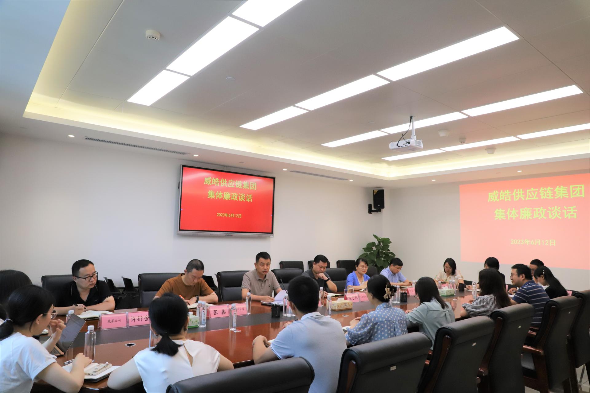 2023年6月12日,威皓供应链集团以“集体廉政谈话+警示教育培训+廉政法规知识测试”组合形式,为履新人员上好“第一课”,把好“起步关”,为公司运营筑起廉政防火墙,扎实推动清廉企业建设工作。威皓供应链集团党委书记、董事长邓露晶开展集体廉政谈话,纪委书记何俊峰开展警示教...