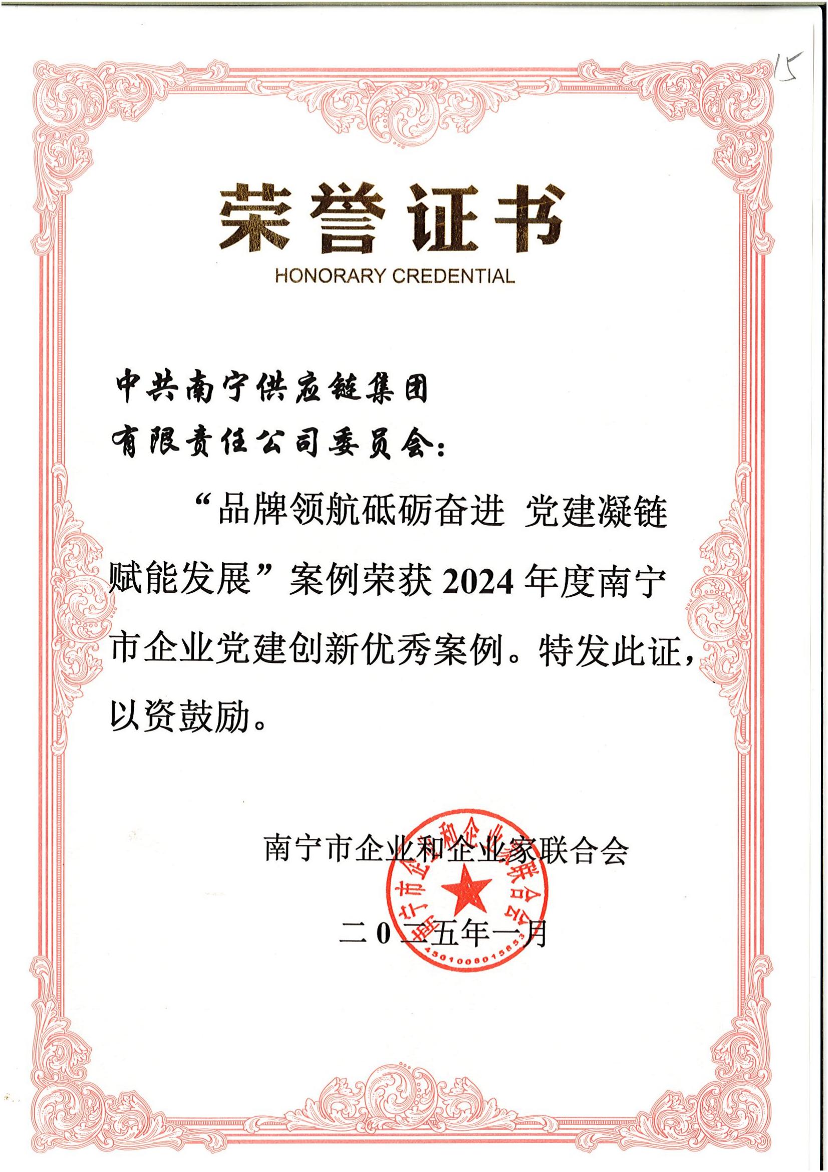 南宁供应链集团开年即在党建引领、文化赋能及科技助力领域获三项区市级荣誉、认证