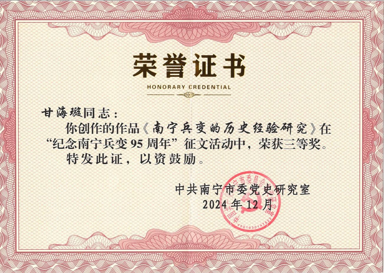 喜报!“纪念南宁兵变95周年”征文活动荣获佳绩