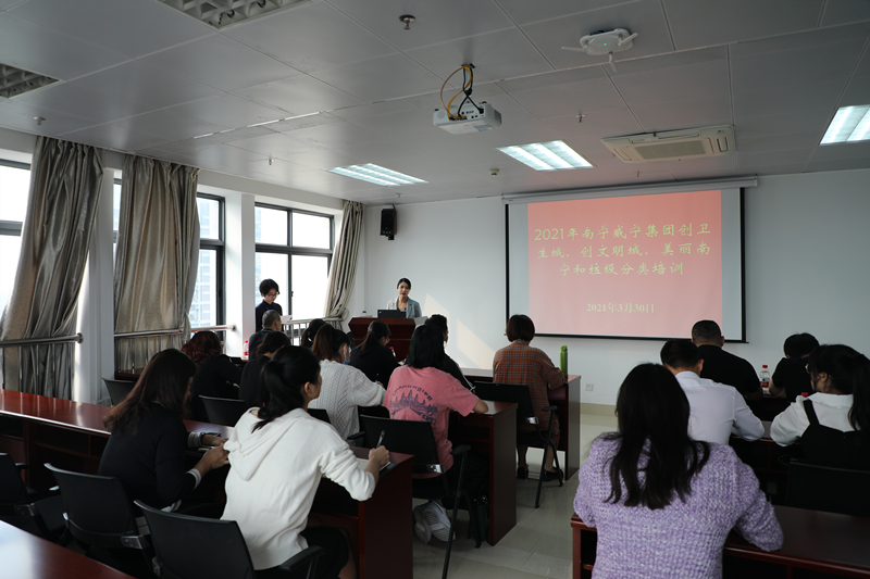培训现场青恒总培训授课为进一步做好2021年创卫生城、创文明城、美丽南宁和垃圾分类工作,全面落实市政府、市国资委工作部署,3月30日,乐鱼电竞(中国)官方网站举办2021年创卫生城、创文明城、美丽南宁、垃圾分类业务培训班,提升各单位相关工作指导能力和工作水平,为首府南宁争创全国文明典范城市、实现国家卫生城市“四连冠”贡献“乐鱼(中国)力量”。集团公司党群工作部主任在开班发言中对培训班学员提出强化责任意识、发挥辐射作用