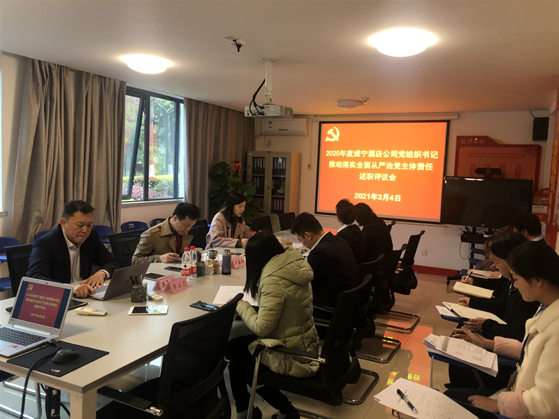 会议现场2021年3月4日上午,乐鱼(中国)酒店公司召开2020年度基层党组织书记落实全面从严治党主体责任述职评议会,集团副总经理、乐鱼(中国)酒店公司党委书记朱海主持会议,并作点评发言和总结讲话。会上,乐鱼(中国)酒店公司党委下属4个党支部书记结合工作实际,围绕2020年度党建、党风廉政建设和意识形态工作取得的成绩、存在的问题和下一步工作措施进行现场述职。朱海对现场述职的支部书记进行了逐一点评,肯定了工作成效,提出了突