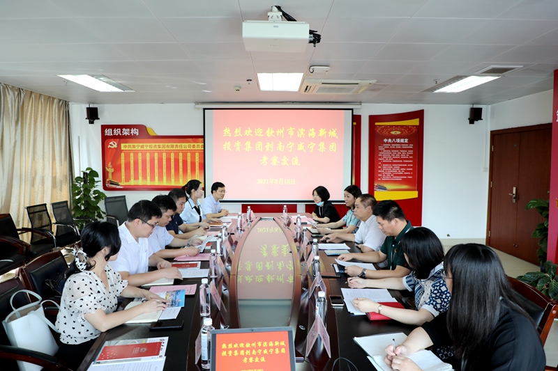 8月18日上午,钦州市国资委党委委员、副主任陆世球带领钦州市滨海投资集团一行7人到访集团,考察学习党建宣传、人力资源及党风廉政建设等相关工作,集团纪委书记韦登香接待并主持座谈会。