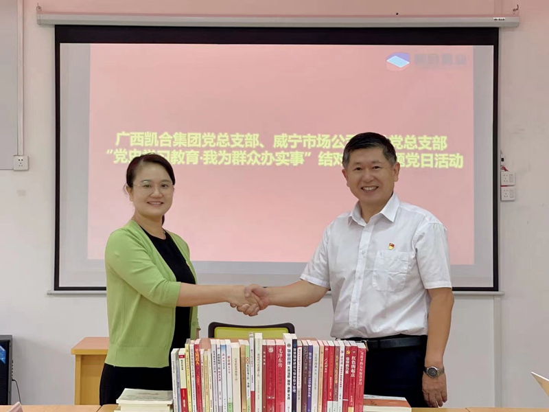 近日,乐鱼(中国)市场公司机关党总支走访了广西凯合置业集团党总支,开展“先锋引领·亲商强企”活动,通过实地参观、座谈交流、捐赠党史学习教育和新时代党务工作书籍等方式,加强与共建单位的沟通联系。