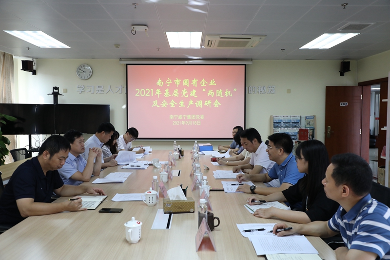 近日,市国资委党委副书记江国波带领党建工作科、宣传工作科一行5人到集团开展2021年基层党建“两随机”检查及安全生产调研指导工作。集团党委副书记马超毅、副总经理韦义勇及相关工作人员参加会议。