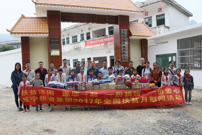 集团到寨鹿村小学开展慰问活动韦登香到山水牛养殖基地调研“眼下学校图书室最缺的就是图书,你们的捐赠真是雪中送炭。”当从乐鱼(中国)投资集团纪委书记韦登香手中接过捐赠清单表,上林县寨鹿村小学校长覃仲荣感动不已。 点滴善举,汇聚脱贫合力。为充分发扬“能帮就帮”的南宁精神,扎实做好困难群众帮扶工作,2017年10月24日,韦登香一行12人到定点帮扶村上林县寨鹿村开展“扶贫月”慰问活动。 上午11点半,阳光明媚,