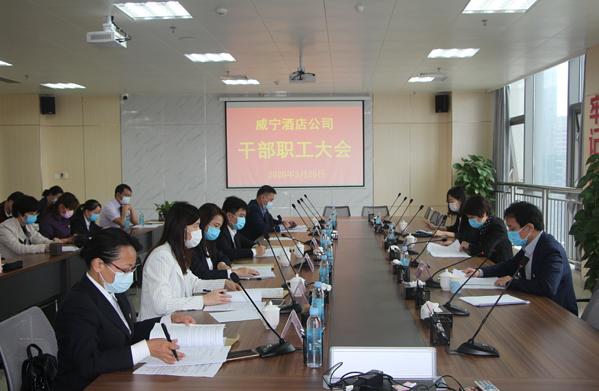 2020年3月25日,乐鱼(中国)酒店公司召开干部职工大会,对公司领导班子和领导人员2019年度工作进行考核。集团党委副书记、总经理刘巧瑛到会指导。