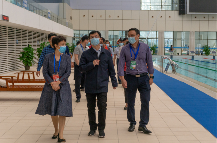 2020年11月19日下午,南宁市市委常委、副市长杨鸿、市政府副秘书长蔡志忠到广西体育中心检查“大地飞歌·2020”晚会安全生产工作。集团党委副书记、总经理刘巧瑛,副总经理黎镇宇汇报了具体工作。