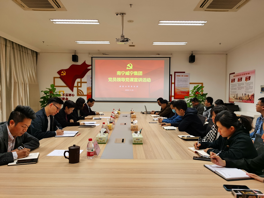 党课现场集团党委副书记、总经理刘巧瑛同志讲话“我们要充分认识“十三五”以来党和国家事业取得的重大成就,全面把握《建议》部署要求,立足岗位,攻坚克难,以更加奋发有为的姿态迈向新征程。”2020年11月25日,集团党委副书记、总经理刘巧瑛同志给党支部工作联系点威邕公司党支部全体党员上了一堂以贯彻十九届五中全会精神、党风廉政教育为主题的生动党课,进一步凝聚共识、汇聚力量,为全面贯彻落实强首府战略、冲刺集