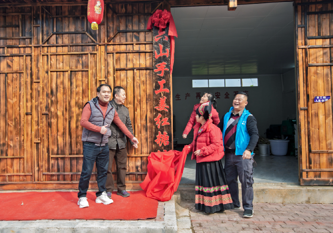近日,上林县白圩镇爱长村集体经济扶贫产业示范园的扶贫项目——六山手工姜红糖坊揭牌仪式在爱长村六山农庄举行,集团副总经理黎镇宇,乐鱼(中国)资产公司负责人为制糖工坊揭牌。制糖工坊的顺利投产进一步整合了爱长村的资源优势,将脱贫攻坚工作推向新台阶。