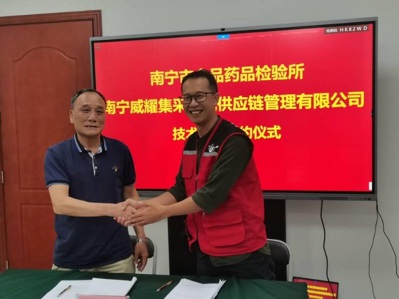 签约仪式现场为深入开展“我为群众办实事”实践活动,推动党史学习教育走深走实,近日,威耀集供应链公司党支部携手南宁市食品药品检验所党支部签署检测技术帮扶协议,通过加深合作和技术帮扶,打造“升级版”校园食品安全线,从而践行为民服务的宗旨。根据协定,今后南宁市食品药品检验所将为威耀供应链公司在食材安全检测的人才培养、实验场地建设、操作流程规范化建设、仪器设备校准、样品检测、应急处置绿色通道搭建等方面提供