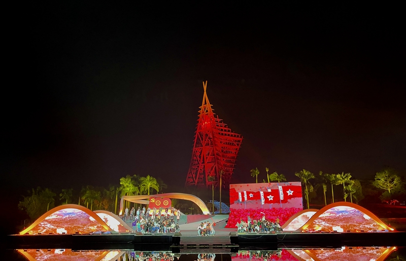 这是一场文旅融合的山水大戏,这是一首绿水青山实景里的壮乡赞歌。12月9日晚,南宁市庆祝中国共产党成立100周年群众文化活动暨第23届南宁国际民歌艺术节“大地飞歌·2021”在南宁园博园彩排。