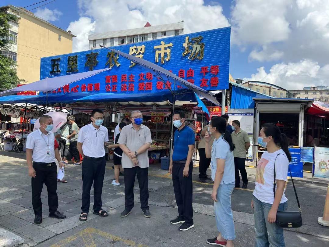 2022年10月3日上午,南宁市政协副主席潘永钟,市新冠肺炎疫情防控指挥部疫情防控第六指导组成员、乐鱼电竞(中国)官方网站党委副书记马超毅带队到乐鱼(中国)市场公司所属五里亭农贸市场开展节日期间供应、疫情防控工作检查。西乡塘区政府副区长魏辉、衡阳街道办及乐鱼(中国)市场公司相关工作人员参加检查。检查中,检查组详细了解五里亭农贸市场进出人员“三码联查”、台账登记、市场消杀等防控措施及国庆假期期间市场经营秩序、安全维稳等工...