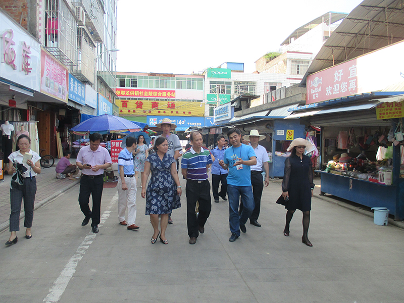 2018年5月24日,南宁市乡村办常务副主任宁光荣与西乡塘区委副书记李东红一同来到乐鱼(中国)市场公司经营管理的金陵市场开展“美丽乡村”建设工作检查。