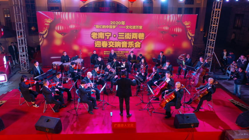 灯笼高挂辞旧岁,雅乐交响迎新春。2020年1月18日晚,老南宁•三街两巷迎来南宁市2020年“我们的中国梦”文化进万家活动,一场经典高雅的迎新年交响音乐会盛宴,为市民游客送上了一份特别的新春文化年货。
