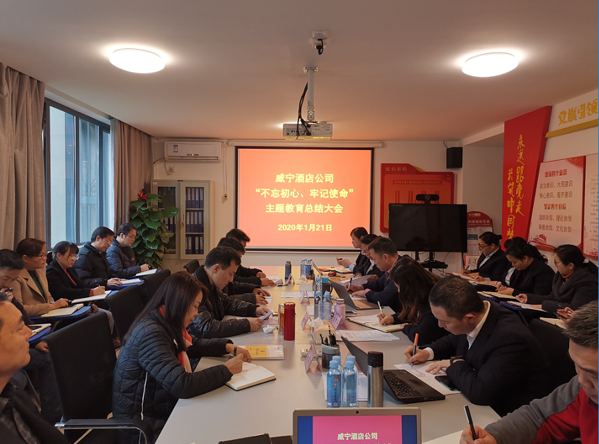 2020年1月21日,乐鱼(中国)酒店公司召开“不忘初心,牢记使命”主题教育总结大会。公司领导班子成员、各党支部书记、各部门和门店负责人共30余人参加会议。